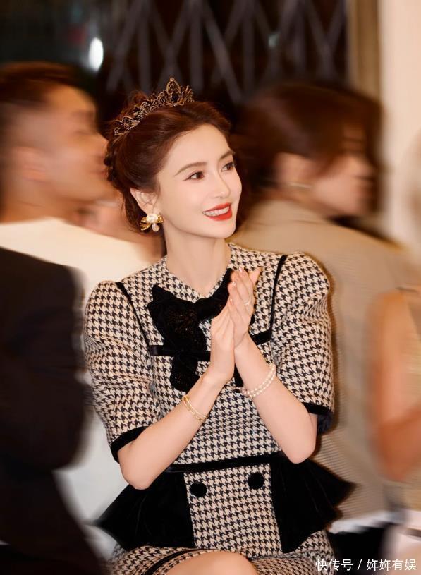 一席千鸟格小礼裙穿在她身上,头戴王冠,面容精致,皮肤都白的发光,整个人就像是个混血公主。 她身材保持的很好,一点也看不出生过孩子。